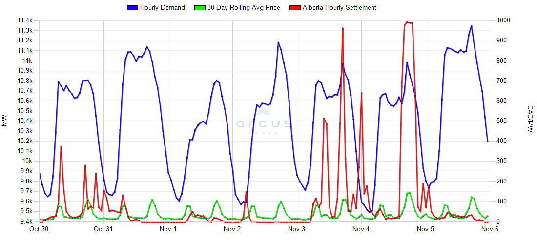 | Alberta (AESO) Prices | Date | Low | Average | High | AvgChg |