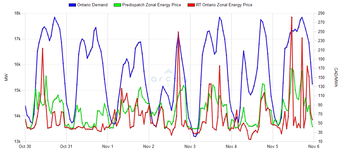 | RT Ontario Zonal Energy Price [Peak HE8-HE23] | 05-Nov | 30.07 | 100.67 | 704.23 | 44.74 |