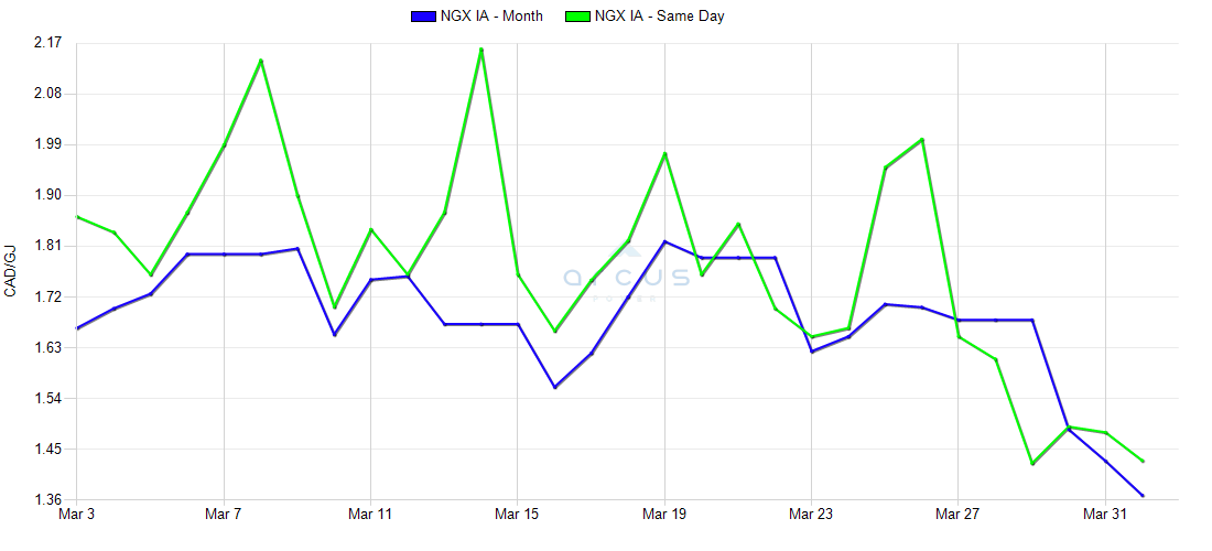 | NGX Intra-Alberta ($CDN/GJ) | Date | Instrument Effective | Settle |