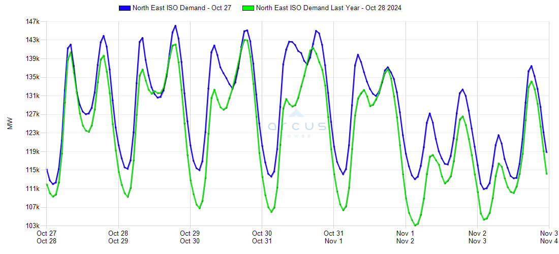 | North East ISO Demand - NYISO PJM-RTO NEPOOL ONIMO | 02-Nov | 110,969 | 120,869 | 137,464 |