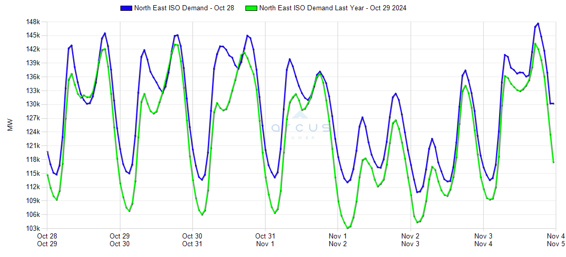| North East ISO Demand - NYISO PJM-RTO NEPOOL ONIMO | 03-Nov | 113,577 | 133,250 | 147,682 |