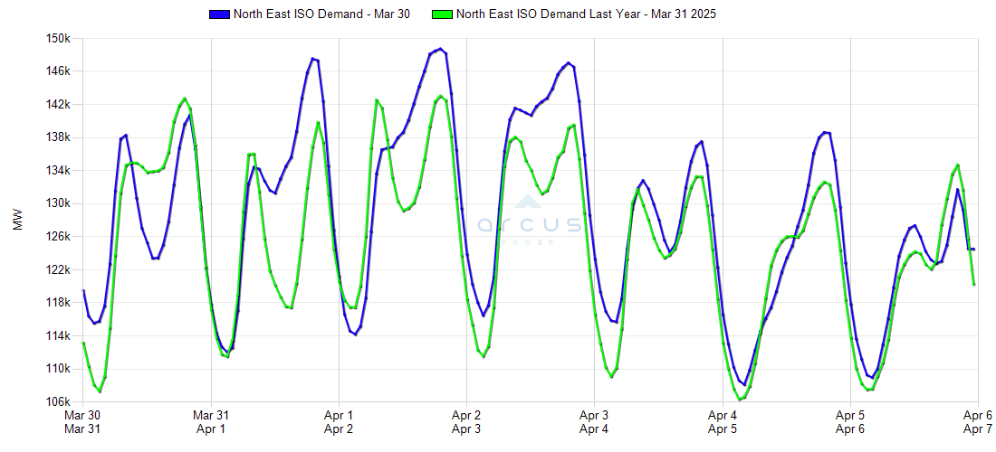 | North East ISO Demand - NYISO PJM-RTO NEPOOL ONIMO | 05-Apr | 108,987 | 120,965 | 131,727 |