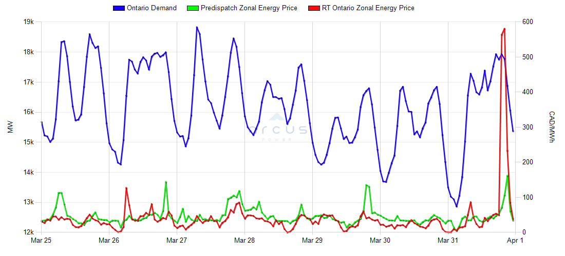 | RT Ontario Zonal Energy Price [Peak HE8-HE23] | 31-Mar | 14.80 | 123.35 | 1,406.32 | 98.93 |