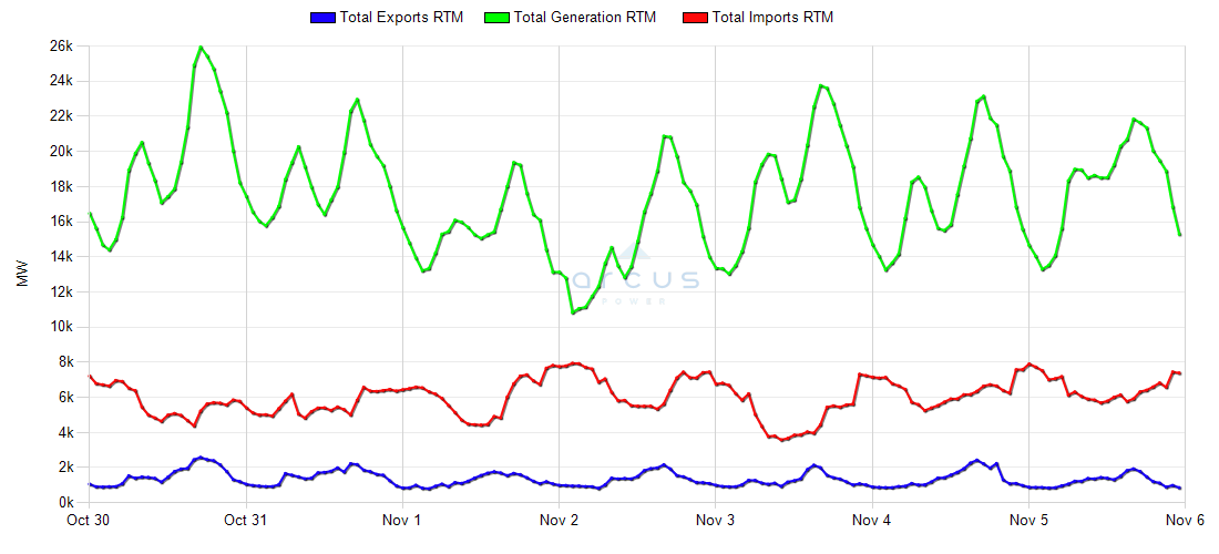 | CAISO IMP/EXP/GEN - Last 7 Days |