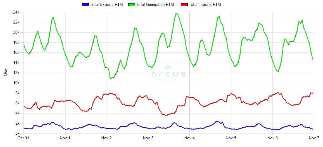 | CAISO IMP/EXP/GEN - Last 7 Days |