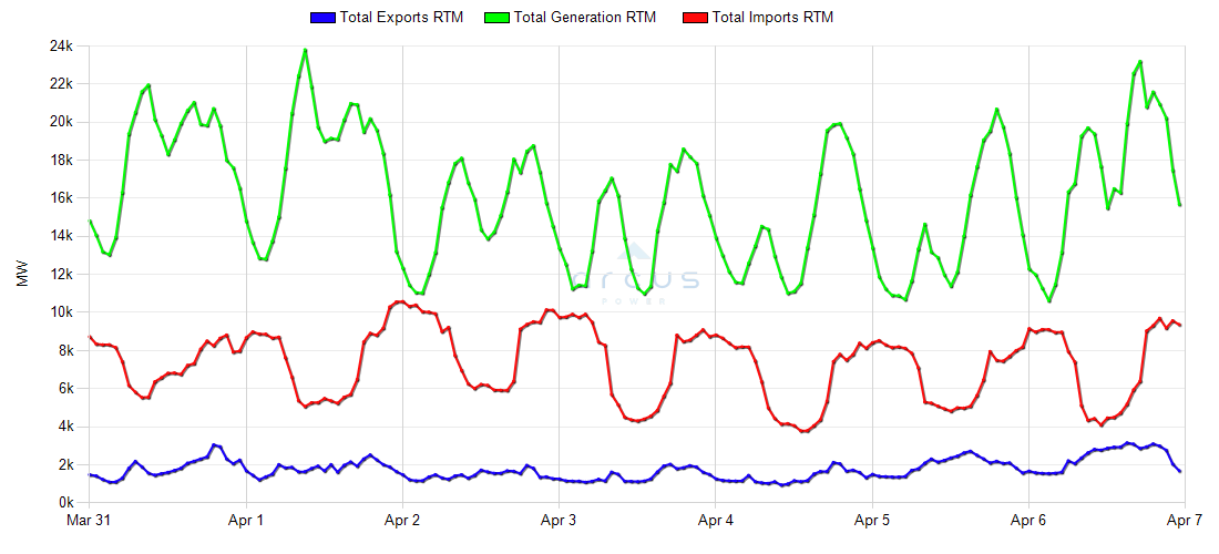 | CAISO IMP/EXP/GEN - Last 7 Days |