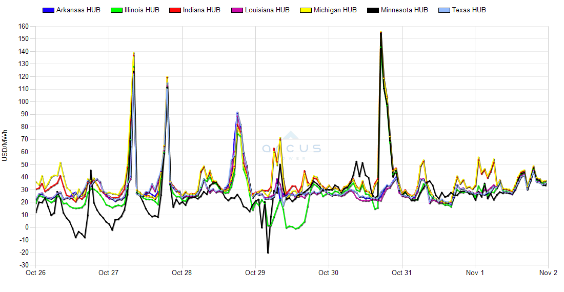 | Minnesota HUB LMP | 01-Nov | 21.95 | 31.74 | 47.24 | 4.35 |