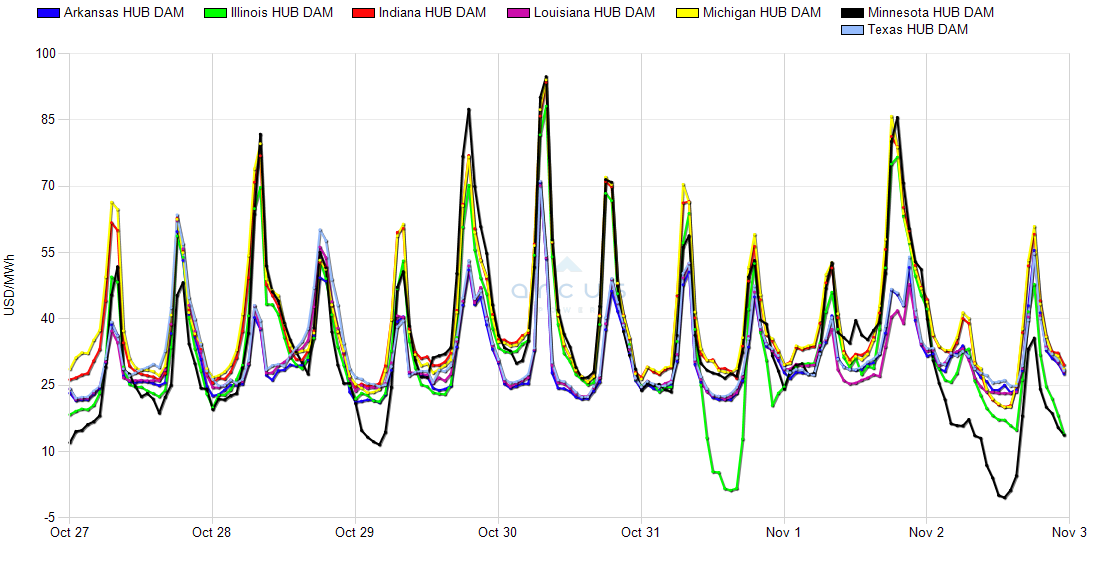| Minnesota HUB DAM LMP | 02-Nov | -0.37 | 16.91 | 39.99 | -26.68 |
