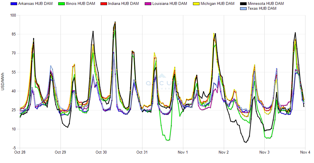 | Minnesota HUB DAM LMP [Peak HE7-HE22] | 03-Nov | 22.98 | 41.17 | 86.30 | 27.02 |