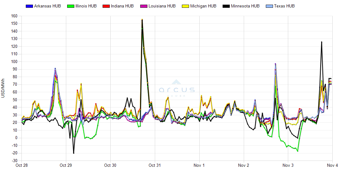 | Minnesota HUB LMP | 03-Nov | -0.10 | 33.63 | 126.05 | 10.16 |