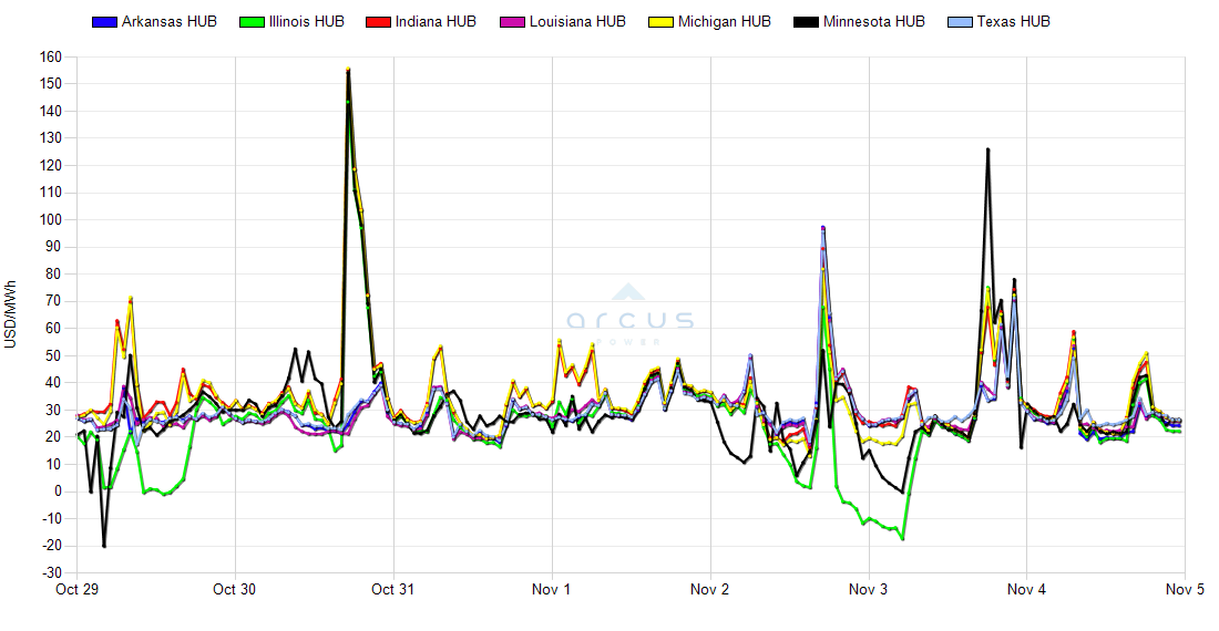 | Arkansas HUB DAM LMP | 05-Nov | 20.11 | 29.45 | 61.49 | -2.72 |