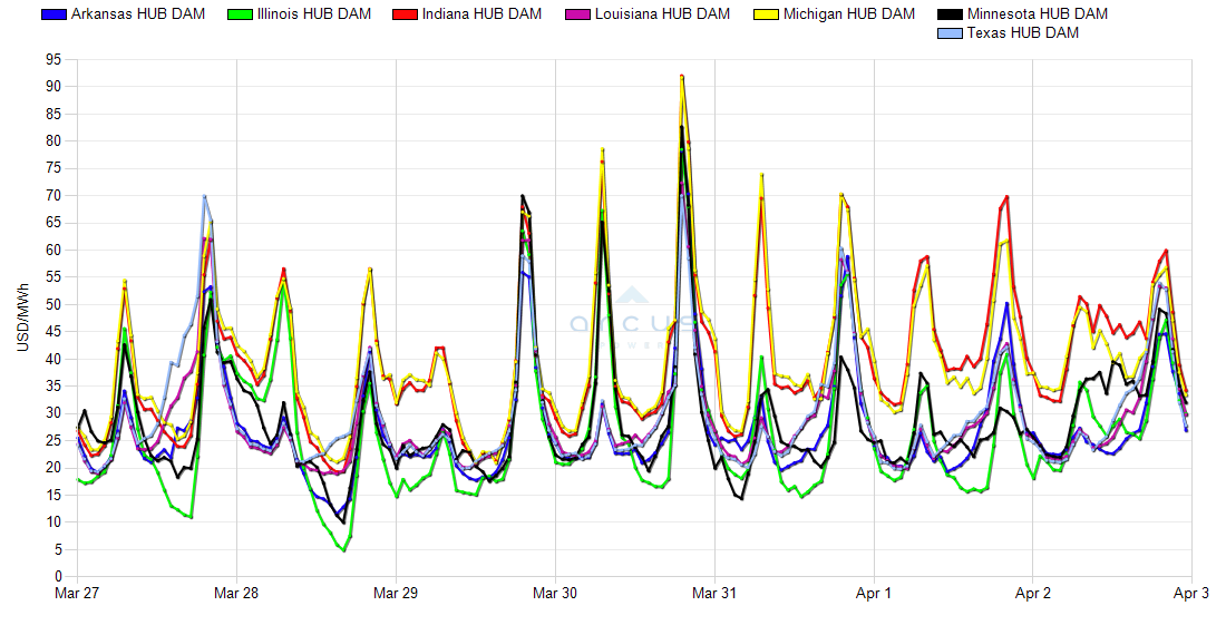 | Minnesota HUB DAM LMP [Peak HE7-HE22] | 02-Apr | 29.62 | 37.75 | 49.18 | 10.21 |