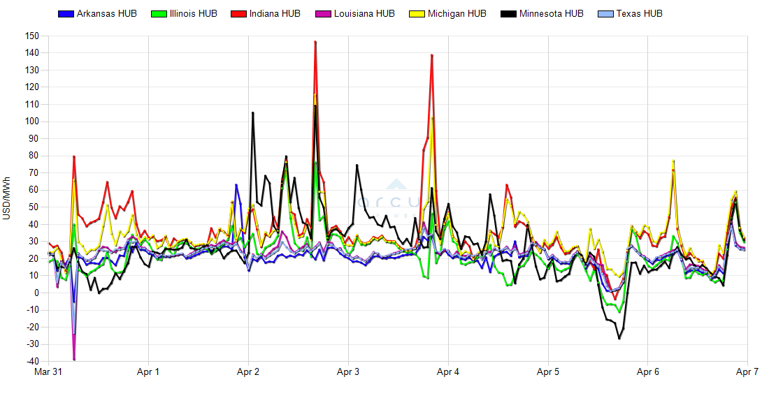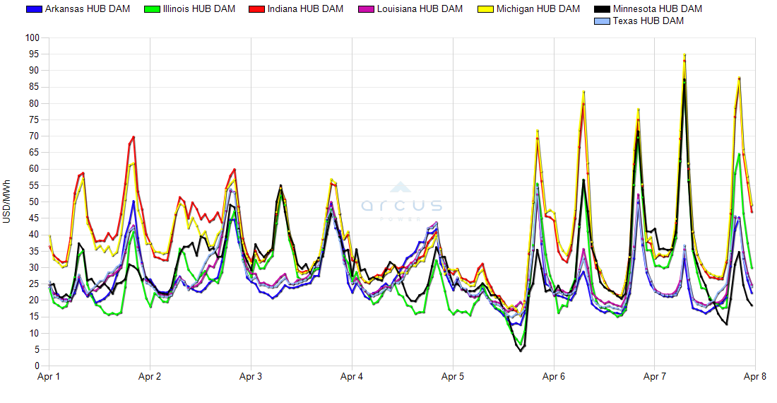 | Arkansas HUB DAM LMP [Peak HE7-HE22] | 07-Apr | 16.15 | 24.56 | 45.33 | 1.05 |