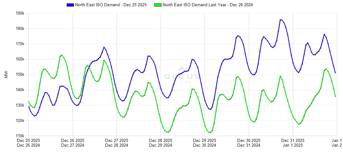 | North East ISO Demand - NYISO PJM-RTO NEPOOL ONIMO | 31-Dec-2025 | 151,375 | 163,062 | 176,398 |