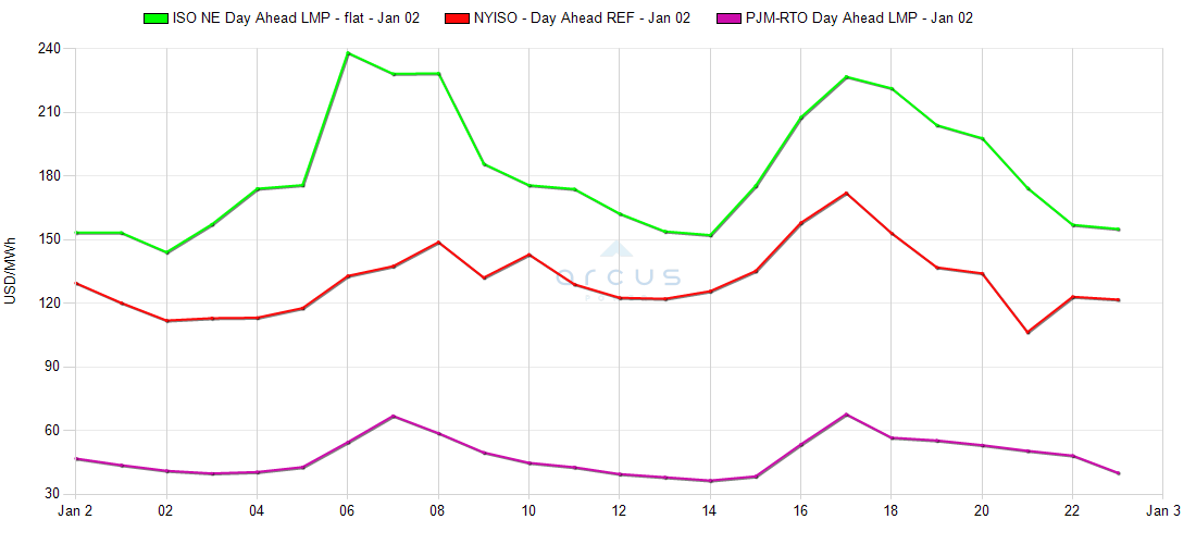 | ISO NE Day Ahead LMP - flat [Off Peak] | 02-Jan | 144.06 | 168.83 | 238.04 | 27.42 |