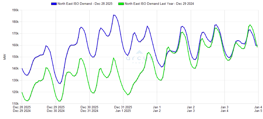 | North East ISO Demand - NYISO PJM-RTO NEPOOL ONIMO | 03-Jan | 149,438 | 161,181 | 173,231 |