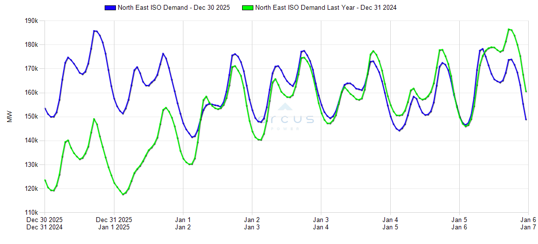 | North East ISO Demand - NYISO PJM-RTO NEPOOL ONIMO | 05-Jan | 146,611 | 163,554 | 178,383 |
