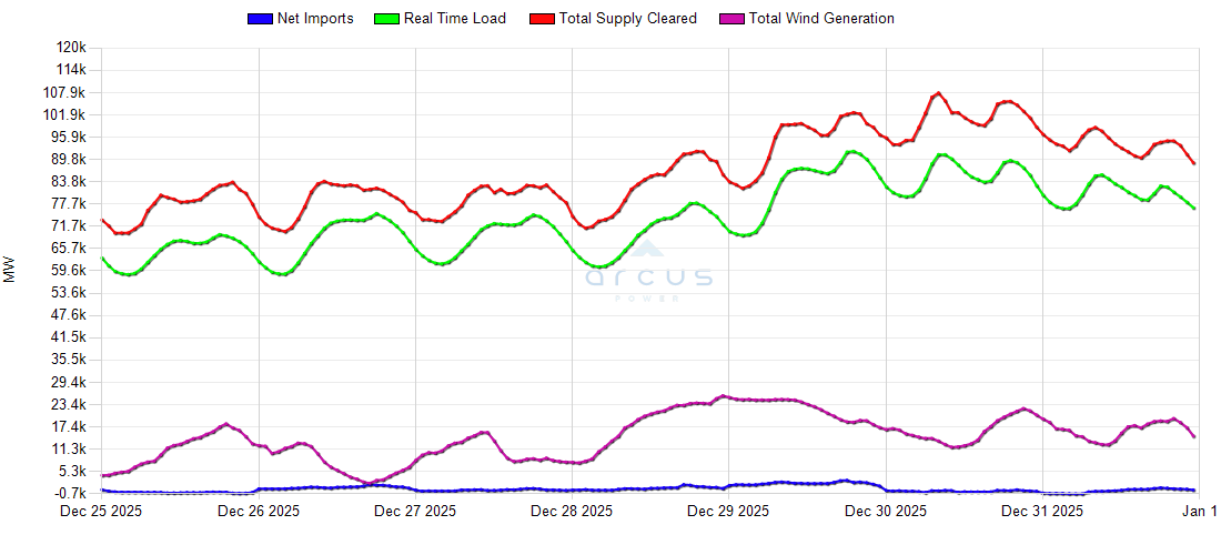 | Arkansas HUB LMP [Off Peak] | 31-Dec-2025 | 28.52 | 31.30 | 35.21 | -0.47 |