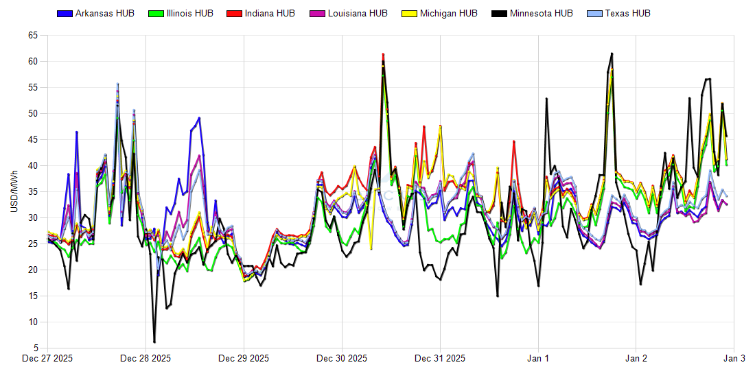 | Indiana HUB LMP | 02-Jan | 32.32 | 38.93 | 52.02 | 2.85 |